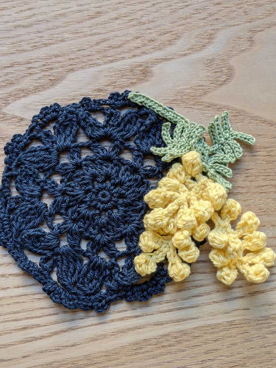 新品 ハンドメイド レース編み かぎ針編み ドイリー コースター かわいいミモザの花 ネイビー の落札情報詳細 ヤフオク落札価格情報 オークフリー スマートフォン版